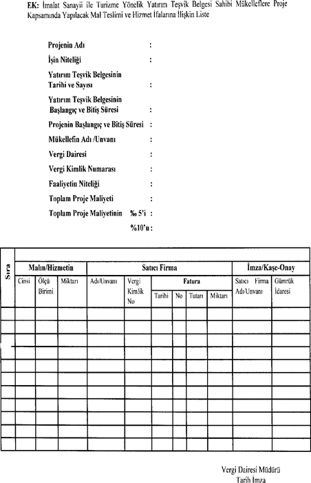 TEŞVİK MEVZUATINA GÖRE YATIRIMLARA KDV İSTİSNASI